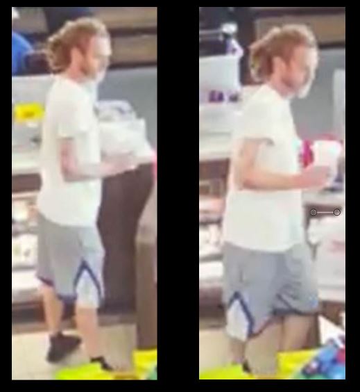 The suspect is described as a white male with dreadlocks and tattoos on both arms. He was accompanied by a young girl.
